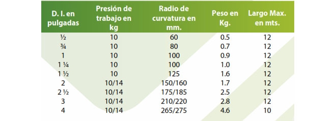 Las principales características del éxito de las mangueras compuestas son: