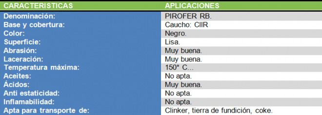 Desarrollada para el transporte de materiales muy calientes y altamente abrasivos, para lo cual posee una cobertura especialmente formulada para ofrecer un óptimo rendimiento en el transporte de: carbón de coke, clinker, materiales siderúrgicos, etc..