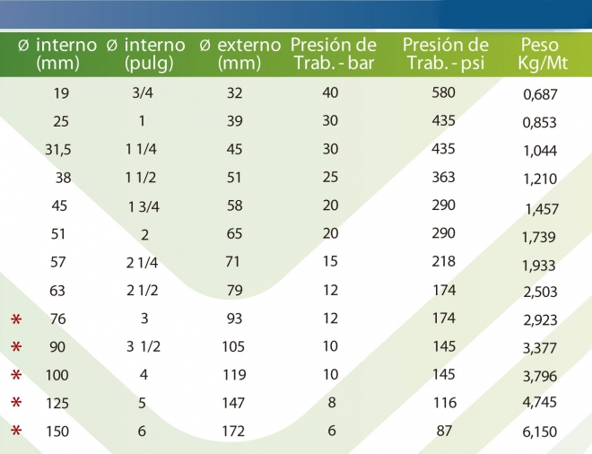 Compuesto externo: NBR - PVC.