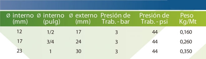 Supera cualquiera de lascaracterísticas de las mangueras plásticas (PVC).