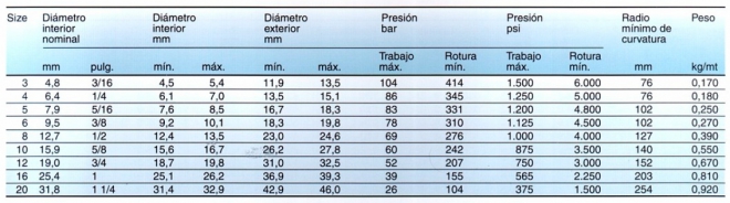 Líneas de media presión de aceite hidráulico, soluciones anticongelantes agua e hidrocarburos con contenido de hasta un 30% de aromáticos.