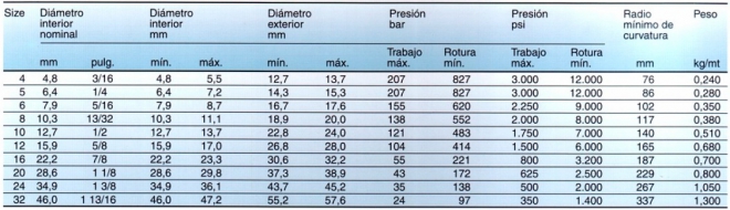 Circuitos de media presión de aceite hidráulico e hidrocarburos con contenido de hasta un 30% de aromáticos.