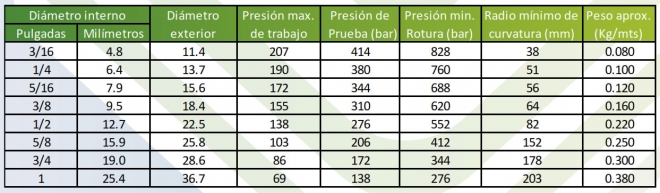 Refuerzo: Fibras sintéticas de alta resistencia, trenzadas.