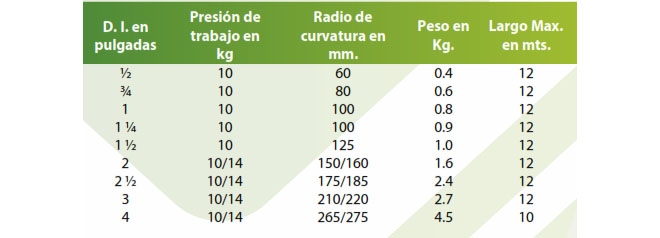 Flexibilidad: Por el mismo motivo son mangueras mucho más flexibles que las tradicionales de caucho o metálicas.