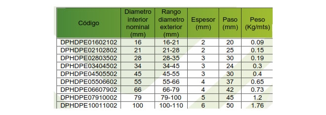 Cinta espiralada de HDPE VIRGEN: