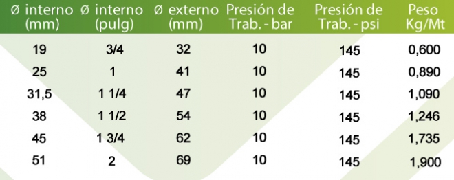 Equipos de arenado y granallado, paso de cemento en polvo y elaborado, cereales y todo tipo de abrasivos no corrosivos en general. Servicio liviano. Tubo interno altamente resistente a la abrasión y a la laceración.