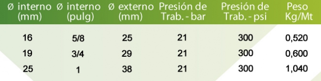 Refuerzo: Trenzas de alambre de acero latonado.