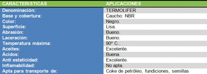 » Cintas Transportadoras » Temperatura, aceites y aplicaciones especiales